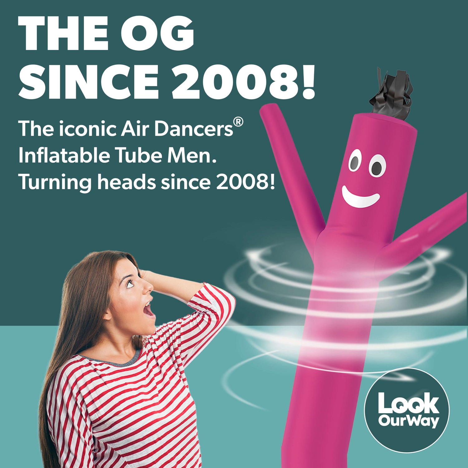 LookOurWay brand Air Dancers® are constructed with high-strength polyamide nylon silk with added tarpaulin. The added tarpaulin brings added flex properties that ensure a longer-lasting and more flexible rip-proof product. The special formula of air dancer material used by LookOurWay brand inflatables has been formulated by over 5 years of experimentation and constant improvement to our existing material. We publish the material make-up of our air dancers without fear of imposters because we know it's just too expensive for others to use. The material has been specially formulated for LookOurWay and no other company can create this high-quality material at a cost-effective rate. LookOurWay air dancers are simply the best value, best style, and best performance.